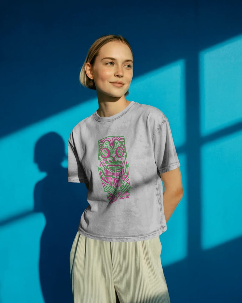 - "Tribal Mask" print: Unique and eye-catching print adds a touch of personality and flair to your outfit.